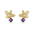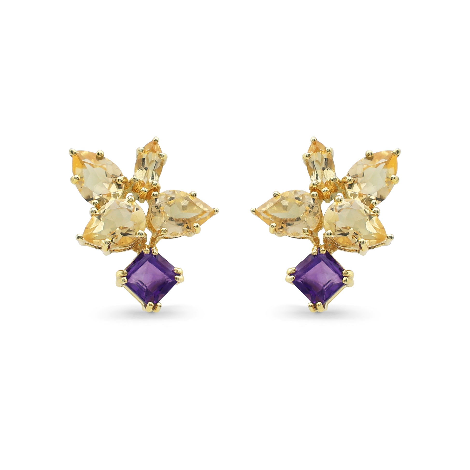Botanical Citrine & Amethyst Cluster Stud Earrings in Gold Finish 925 Sterling Silver