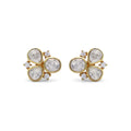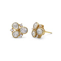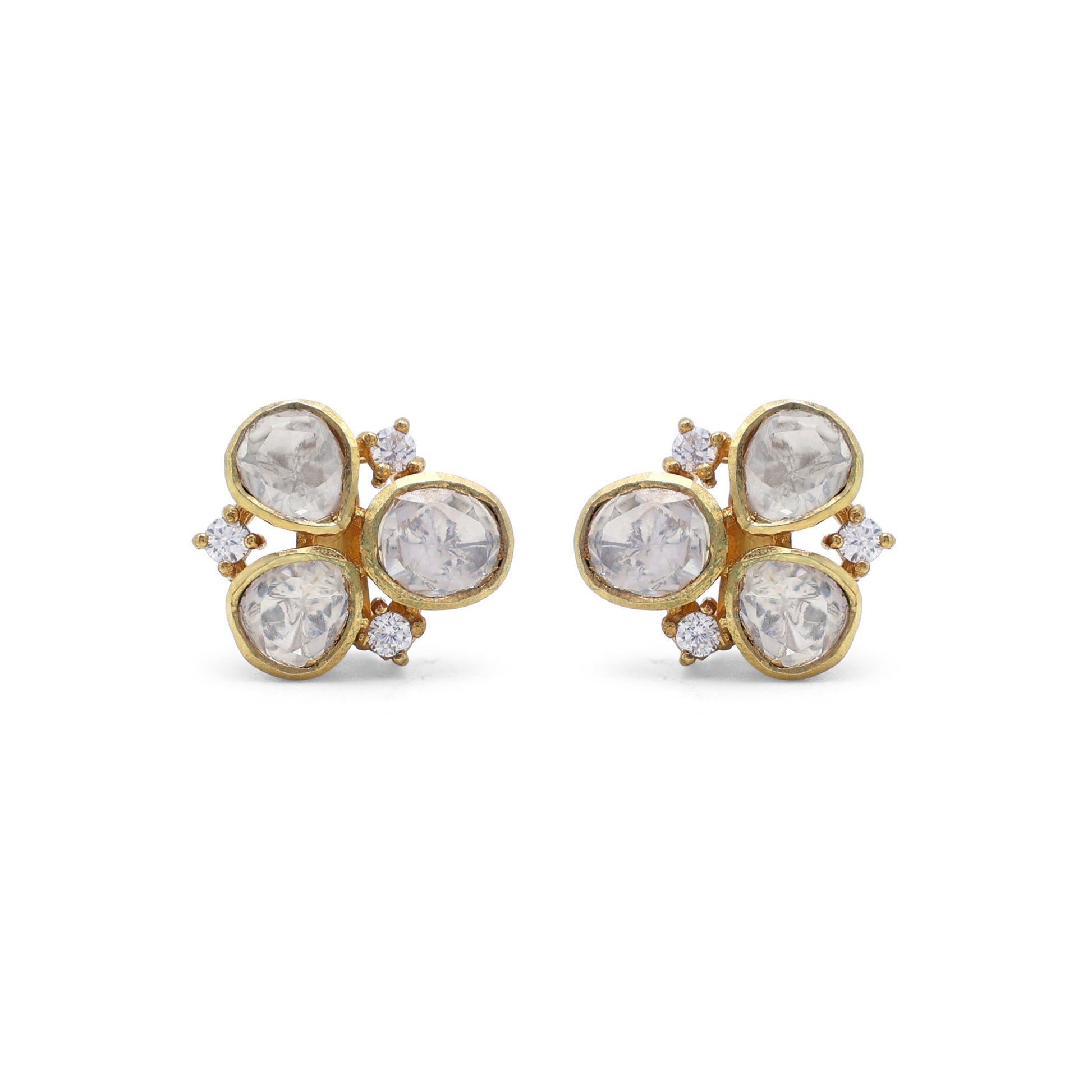 Kundan Style Moissanite Clover Cluster Stud Earrings with CZ Accents in Gold Finish 925 Sterling Silver