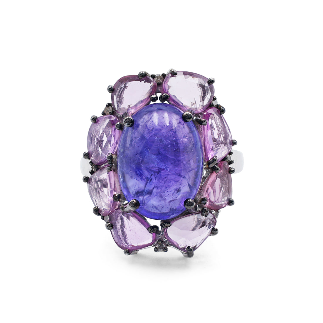 Bold Artisan Tanzanite & Pink Sapphire Cluster Ring in Black Rhodium Sterling Silver