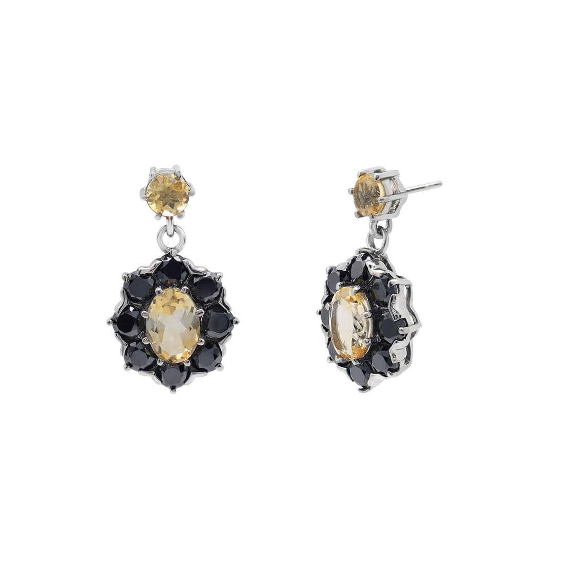 925 Sterling Silver Black Spinel & Citrine Stones Earrings