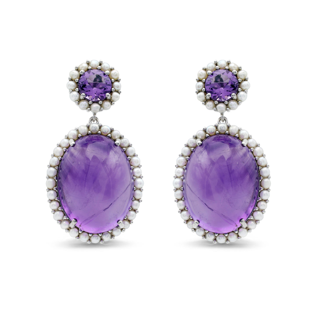 Vintage-Style Amethyst & Freshwater Pearl Halo Drop Earrings in 925 Sterling Silver
