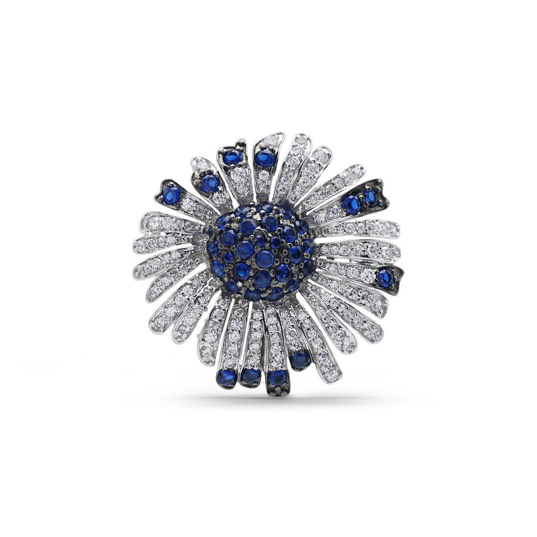 Statement Floral Sunburst Brooch with Lab-Grown Sapphire & Pavé CZ in 925 Sterling Silver