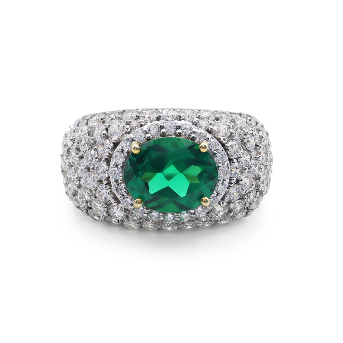 Statement Lab-Grown Emerald & Pavé Cubic Zirconia Bombé Ring in Two-Tone 925 Sterling Silver