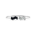 A captivating study in dramatic contrast, this ‘Toi et Moi’ bangle pairs the deepest black with a whisper of ethereal green. Crafted from a highly polished 925 sterling silver band, this open cuff features two striking clusters of baguette-cut gemstones. On one side, sleek, opaque black onyx stones are set in darkened prongs for added drama. They sit opposite the cool, translucent shimmer of green amethyst, also known as prasiolite. The chic, geometric arrangement makes this a sophisticated statement piece, perfect for adding a touch of modern elegance to any day or evening look.