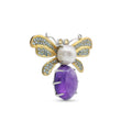 A vibrant and artistic celebration of nature, this beautiful butterfly brooch is a true showstopper. Crafted from 925 sterling silver in a sophisticated two-tone design, it features a large, oval amethyst cabochon as its body, displaying a deep and mystical purple. A lustrous freshwater pearl forms the thorax, while the intricate, gold-finish wings are pavé-set with sparkling sky-blue topaz. Two sunny citrine gems create the antennae, adding a final pop of color. This unique and colorful pin is a perfect piece of wearable art for any occasion.