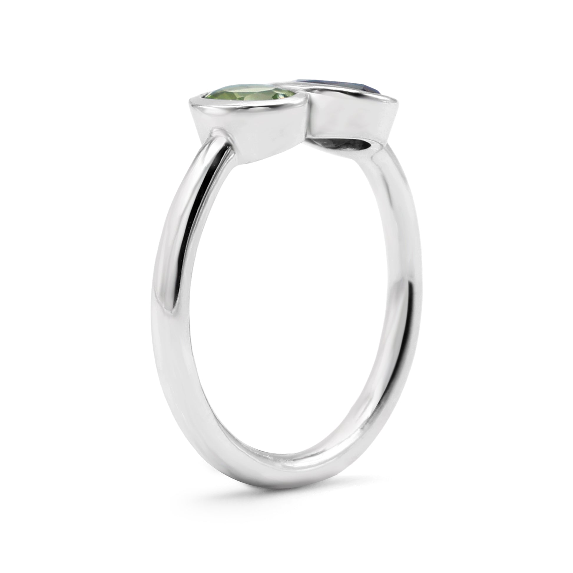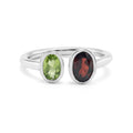 Minimalist Toi et Moi Ring with Bezel-Set Oval Peridot & Garnet in Sterling Silver