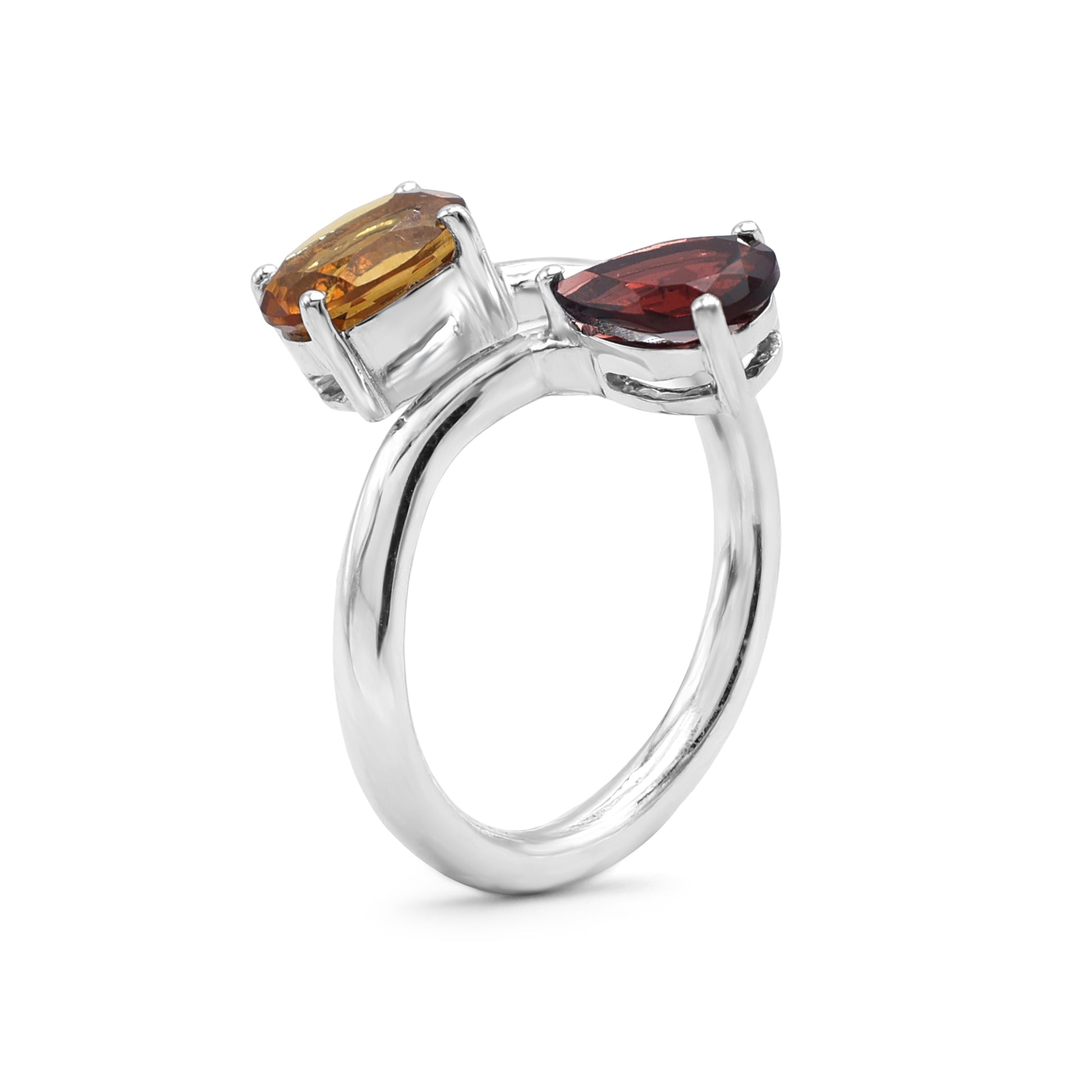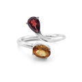 Toi et Moi Bypass Ring with Pear-Cut Garnet & Oval-Cut Citrine in 925 Sterling Silver